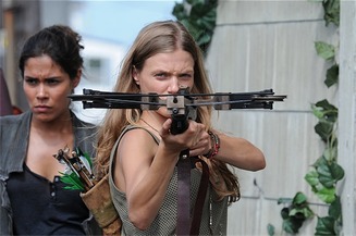 A captured rebel is being interrogated by a Monroe commander played by Mark Pellegrino. I love this actor, he has such an interesting look and cadence to his voice. The commander, Jeremy, plays a game of Russian roulette to try to get the answer out of the prisoner. Once Jeremy gets his answer, he shoots the rebel. Honestly, I saw that from a mile away. Unless they were torturing me, I think I could hold onto that information especially since I’m dead already.