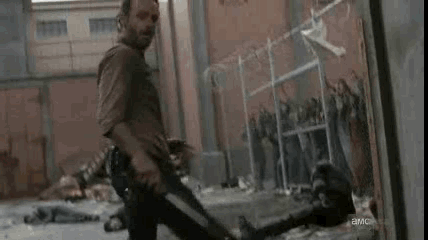 Rick, still anxious to get through the rest of the prison, readies another group to venture further in. This time the prison has fewer windows and the halls are darkened. They quickly run into a mob that they do not want to attempt to take on, they decide to retreat. As they retreat, they run into a different mob and begin to panic a little. Everyone runs, Glenn and Maggie become separated from the group. After a quick reprieve, Rick and the other men begin to search for the lost pair. I should also not that walkers are not the only form of zombie, as a lurker pops up. For those that do not know, a lurker is a zombie that does not have the energy to move as much as others and strikes when the time becomes right. The lurker latches on to Hershel’s calf. The group pick him up after killing the lurker. They retreat into a commissary. Rick takes it upon himself to try to save Hershel and prevent the bite from killing him by amputating the leg of Hershel. It is not a pretty sight. We are then left with this episode’s cliff hanger as we find out that there are prisoners that have survived in the mess hall.