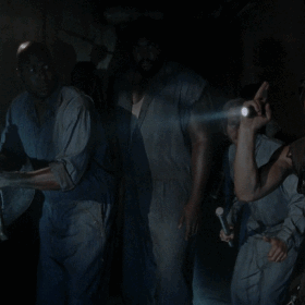 Amidst all that chaos, the survivors move out and roll Hershel on a cart. Confused, the prisoners hesitantly follow. The survivors fall back to the cell block that they had already cleared out. Daryl sets up in the common area with his crossbow ready, waiting for the prisoners to walk through the gate. As Hershel continued to be worked on in a cell, the prisoners arrive and tensions begin to flare. Daryl tells them that they are free to leave but Tomas, the prisoners’ leader, says that this is his cell block. Tomas pulls a gun on Daryl, still with his crossbow, and T-Dogg enters with a gun of his own.