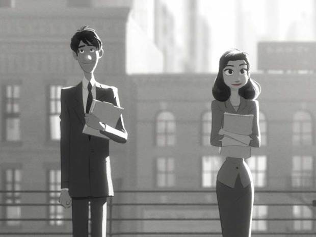 John Kahrs does an amazing job of combining computer and traditional animation in his first directing credit, Paperman. Check out a short series of featurettes where he talks about some of his design decisions. The film itself is beautiful and is a feat of storytelling. Similar to much of Wall-E, the short tells a warm and heartening story without any dialogue.The story itself is a tried and true story of serendipity with a Disney touch of flair. The layering of traditional line animation over CG character models looks beautiful and gave me a sense of nostalgia. The line drawing added an extra touch of fluidity that adds to the life of the characters. All in all, another in a long line of beautiful and imaginative shorts before a Pixar film, but this one lands firmly in the hands of a new and reinvigorated Disney Animation Studio.