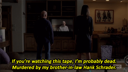 Walt confesses to working for Hank as the cook for HANK’S meth empire. He says that when he was diagnosed with cancer Hank took him on a ride along and convinced him to spend what time he had left making money for his family. Walt agreed and cooked for Hank. He detailed Hank’s partnership with Gustavo Fring and their falling out. Walt went on to say that Hank sold him into Gusatvo’s operation and when things turned sour Fring attempted to kill Hank. The assassination was unsuccessful, but it left Hank badly injured and Walt was forced to pay the hospital bills totaling over $177k. In retaliation Hank forced Walt to build a bomb which eventually killed Gustavo. During this confession Walt is practically in tears and looks like a man at the end of his rope. He talks about his fear of Hank and how he felt like he was in too deep to escape. Hank would threaten Walt and his family, going as far as kidnapping his children for three months. It was only at this point that his dear wife, Skylar, found out about his criminal life and was horrified.