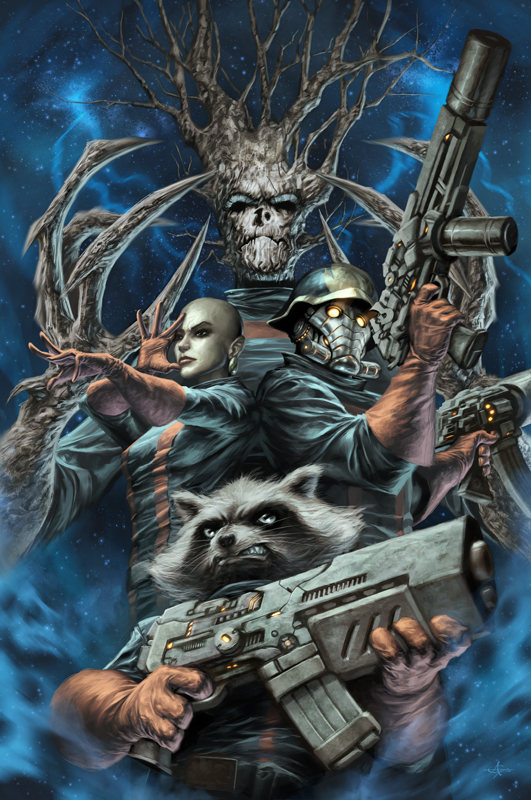 In 2008, Dan Abnett and Andy Lanning followed the success of two major cosmic events with a new series featuring several characters from the events. Following an invasion from the Negative Zone (an anti-matter universe) and a failed conquest of the Kree by Ultron, Peter Quill, aka Star-Lord, bands a group together to proactively stop galactic threats. This group consists of: